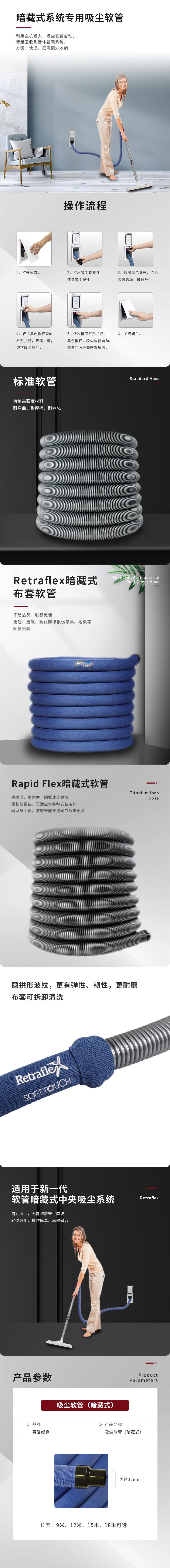 利用主机吸力,吸尘软管自动等量回收到墙体官网系统,方便、快捷,无需额外收纳。